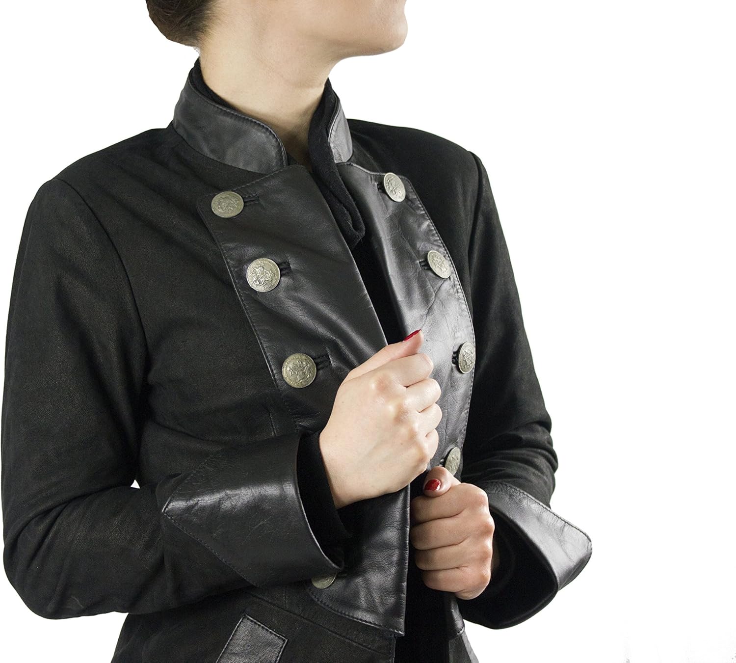 Lederjacke Fiora Damen Echt Leder Pirat Gothic Ledermantel L Amazon De Bekleidung