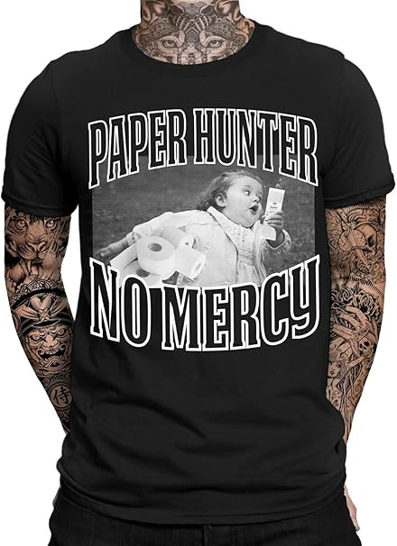 Paper Hunter Herren Fun T Shirt Spruche Lustig Apokalypse Panik Hamsterkauf Manner Shirt Mit Spruch No Mercy Amazon De Bekleidung