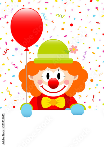 Clown Roter Luftballon Banner Luftschlangen Konfetti Kaufen Sie Diese Vektorgrafik Und Finden Sie Ahnliche Vektorgrafiken Auf Adobe Stock Adobe Stock