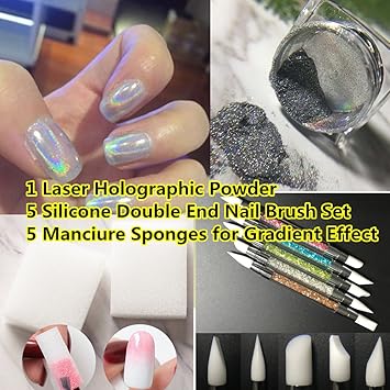 Joligel Superfine Holografische Glitzer 0 5 G Set Von 5 Silikon Nail Pinsel Set Doppel Spitze Mehrzweck 5 Schwamme Fur Ombre Farbverlauf Set Fur Diy Nail Design Nagel Dekoration Gross Pedikure Amazon De Beauty