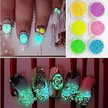 Foreverstore 6 Farbe Luminous Nail Art Pigment Glitzer Staub Puder Malerei Nail Art Spitze Amazon De Kuche Haushalt