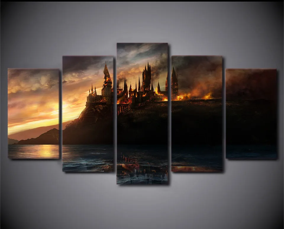 Leinwand Wandkunst Poster Hd Gedruckt Spiele Malerei Rahmen 5 Stucke Harry Potter Hogwarts Sonnenuntergang Bilder Home Decor Kunstwerke Games Painting Painting Framehd Prints Aliexpress
