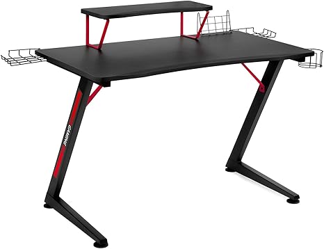 Gtplayer Schreibtisch Gaming Tisch Computertisch Z Formiger Rahmen Ausgestattet Mit Lautsprecher Und Cd Halter Getrankehalter Tablet Halter Steckdosenhalter Und Monitorstander Amazon De Kuche Haushalt