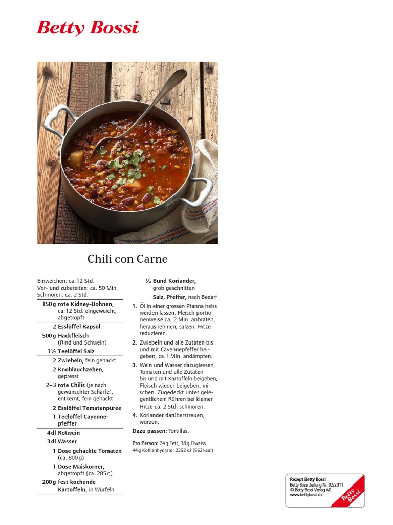 Chili Con Carne Pro Person 24 G Fett 38 G Eiweiss