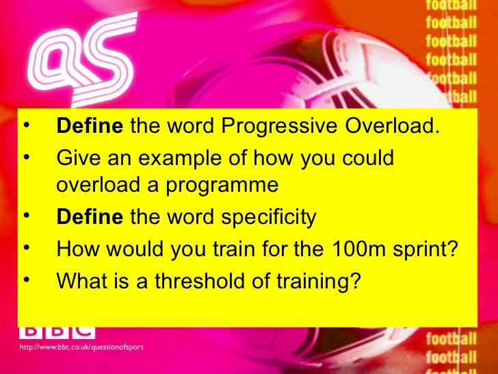 Thresholds of training (aerobic target zone 60–80% and anaerobic target zone 80%–90%, calculated using the Karvonen formula) 332 Factors to consider when deciding the most appropriate training methods and training intensities for different physical. PE (GCSE) Curriculum Map Year 7 Year 8 Year 9 Paper 1 Principles of Training / Training Thresholds / Types of Training / Preventing Injury / Training Seasons / Warming Up & Cooling Down Non examined written assessment requiring analysis of personal performance and followup action plan. The intensity of the work is just below the point at which an oxygen debt would develop This is at the training threshold rate At the start of the programme, an individual may work for only or 30 minutes However, over a number of sessions, the time spent would increase, although the workload would probably remain the same.