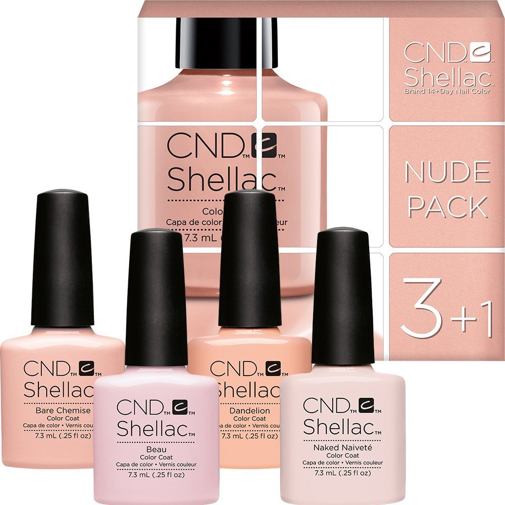 Cnd Shellac Nude Colour Set 4 Colours For The Price Of 3 Bare Chemise Beau Dandelion Naked Naivete Amazon De Beauty