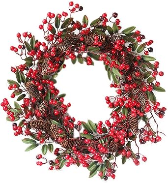 Hukz Kunstlicher Turkranz Weihnachten Kranz Girlande Fur Haustur Deko Winter Haus Dekoration Deko Kranz Tannenkranz Adventskranz Weihnachts Weihnachtsgirlande Rote Beeren Weihnachtskranz O 60cm Blumenstrausse Garten