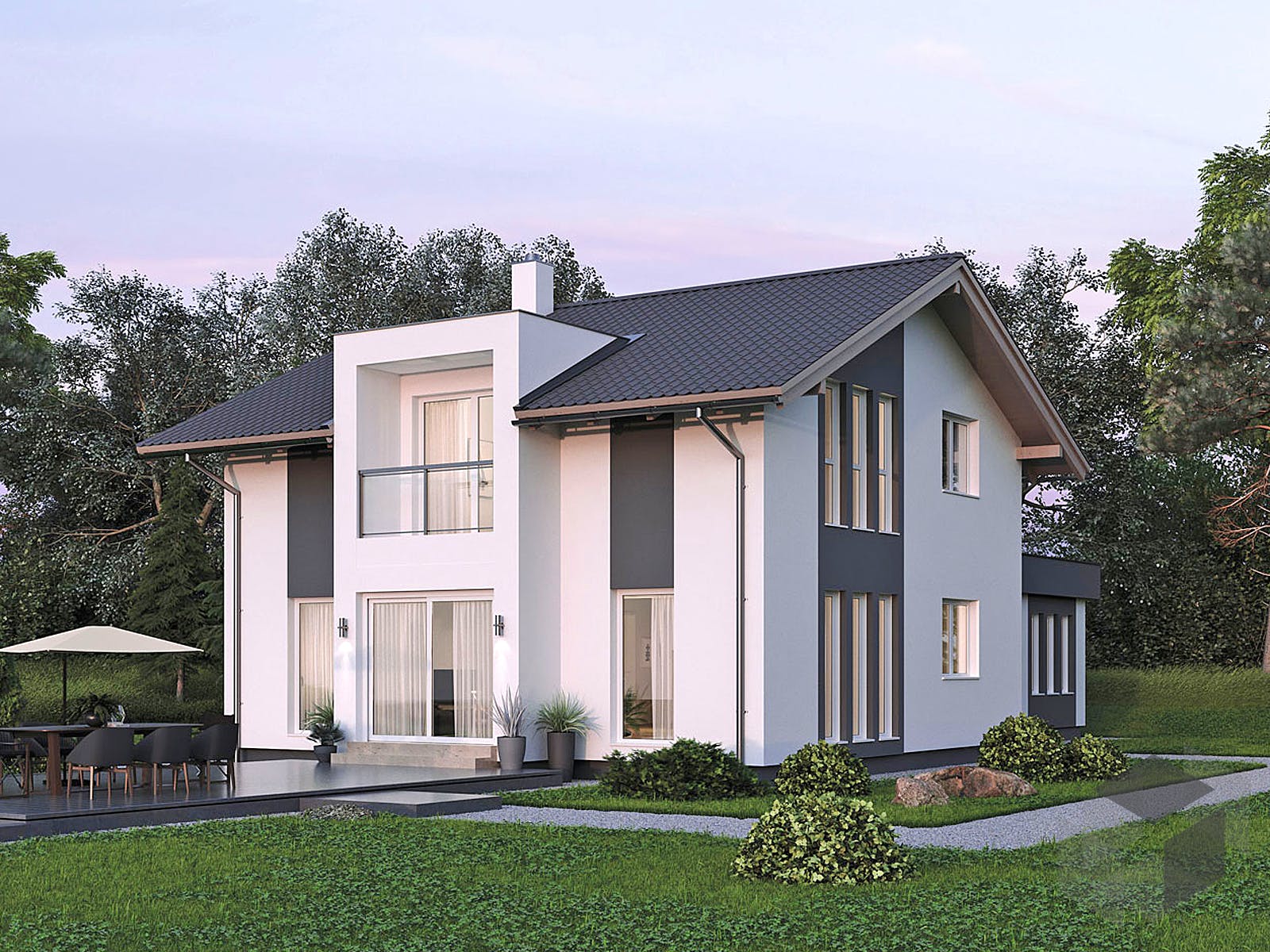 Modernes Einfamilienhaus Mit Erker Anbau Satteldach Architektur Haus Bauen Ideen Elk Haus 123 Von Elk Fertighaus Hausb Einfamilienhaus Haus Style At Home