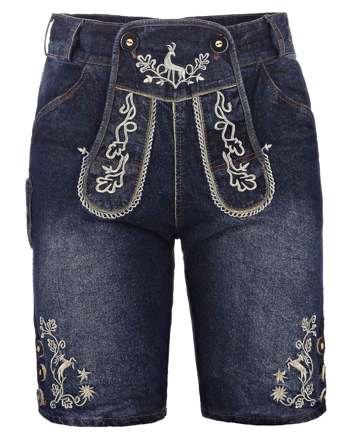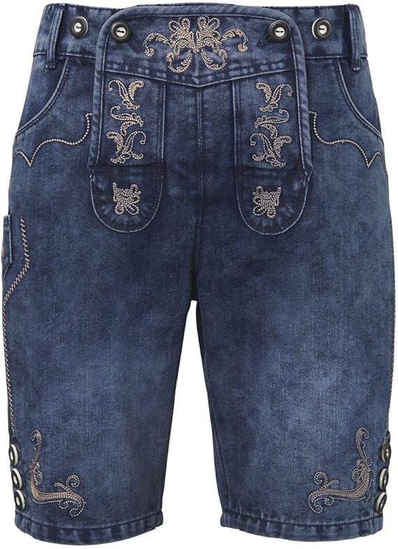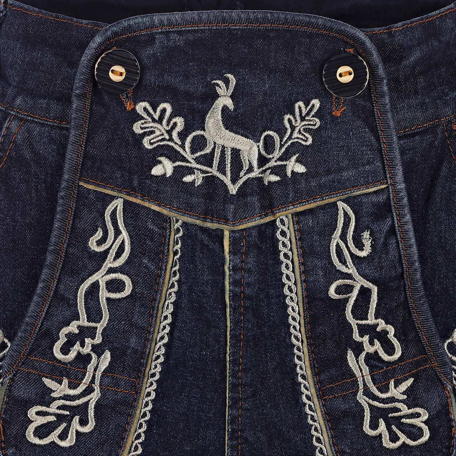 Jeanshose Oktoberfest Jeans Stretch Blau Kurze Herren Trachten Hose Mit Trachten Stickerei Im Lederhose Stil