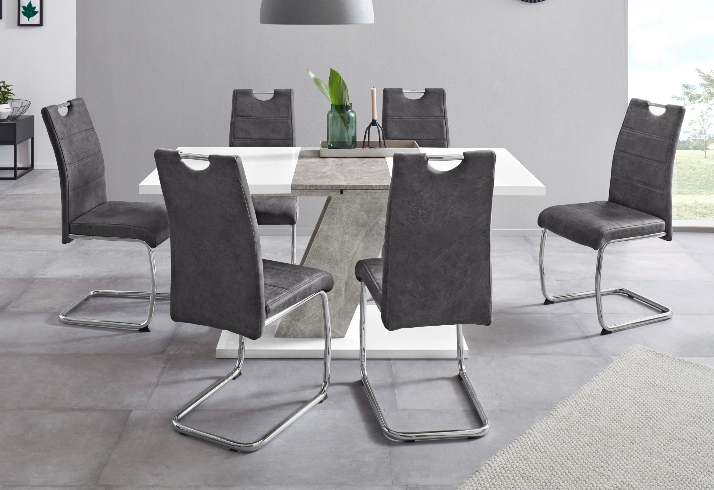 Flora Etkezogarnitura 4 1 Beton Feher Szurke Flora 1 Etkezoasztal Cristal Etkezoszek 4 1 Es Garniturak Interdeco Hu Internetes Lakberendezesi Aruhaz