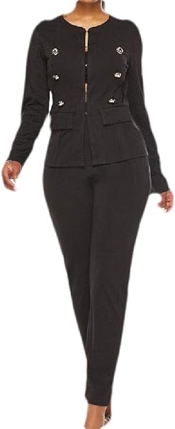 Security Langarm Blazer Fur Damen Sexy Mit Hose Business Anzug Gr Us L Schwarz Amazon De Bekleidung