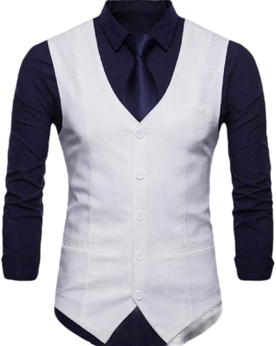 Security Herren Weste 5 Knopfe Formelle Slim Fit Business Kleid Anzug Weste Gr L Weiss Amazon De Bekleidung