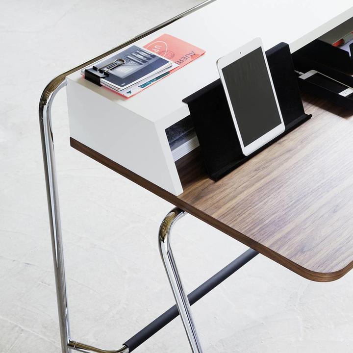 S10 desk, Thonet Design Team/Randolf Schott, 14 S10 is a writing desk, compact in size, designed to adapt to small spaces Tubular steel frame, its incline has been especially designed to help users stand up in total comfort S10 is fitted with footrest, which enables a comfortable user experience and concealed cable compartment. Thonet – Sofa 00;. 21 Bild zu Thonet Stahlrohr Schreibtisch Schreibtisch Stahlrohr Art Deco Stahlrohr Schreibtisch Bauhaus Stahlrohr Schreibtisch Muji Schreibtisch Thonet S285.