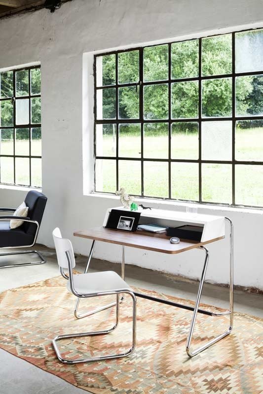 Schreibtisch »S10« von Thonet Die Manufaktur Thonet hat sich beim Schreibtisch »S 10« von der hauseigenen Kollektion klassischer Stahlrohrmöbel inspirieren lassen Der entscheidende Vorteil. Schreibtisch S 10 BTH ca 110 x 67 x 74 cm Gestell Metall verchromt Platte (Oberfläche) Nussbaum geölt Korpusaufsatz ThonetDur white 9010 Kante (Korpusaufsatz) Nussbaum massiv geölt Kunststoffgleiter. The S 285/2 Classics in Colour Desk was designed by Marcel Breuer for the brand Thonet Breuer was one of the key figures of the Bauhaus movement in the 19s, a group of designers who changed the way we think about domestic furniture Created in 1925, Classics in Colour is a typical Bauhaus product capitalising on the development of new.