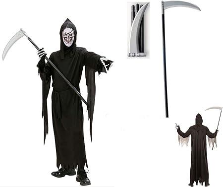 Kinder Kostum Sensenmann Sense Gr 140 Cm Robe Gurte Maske Kapuze Sense Halloween Verkleidung Amazon De Spielzeug