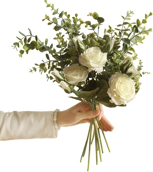 Zqirolt 1 Strauss Kunstliche Blume Rose Eukalyptus Diy Gartenparty Hochzeit Handwerk Dekor Kunstliche Blume Nicht Verblassen Geschenk Milchig Weiss Amazon De Kuche Haushalt