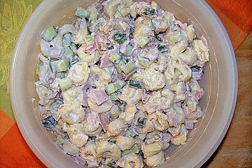 Selbstgemachter TortelliniSalat mit Thunfisch 7 Richtig lecker selbstgemacht diesen TortelliniSalat mit Thunfisch machst du nicht mit Nudeln aus der Packung – nein, wir zeigen dir, wie du. Tortellini Nudelsalat mit Thunfisch aber der fertige Salat schmeckt ganz gut Also wir brauchen 500g Tortellinis es gehen aber auch andere Nudeln ich habe hier Tortellini mit Ricotta. Rezept von EAT SMARTER 2,5Tsd 12 Zutaten Zutaten 600 g Tortellini Fertigprodukt (z B mit KäseSpinatfüllung) Salz 1 EL Olivenöl 2 Zucchini 0 g gekochter Schinken (in Scheiben) 4 Frühlingszwiebeln 0 g Kirschtomaten.