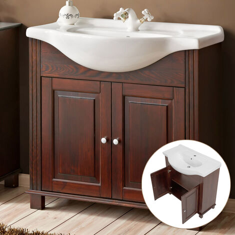 Landhaus Waschtisch Inkl Keramik Waschbecken 85 Cm Liria 56 Massivho