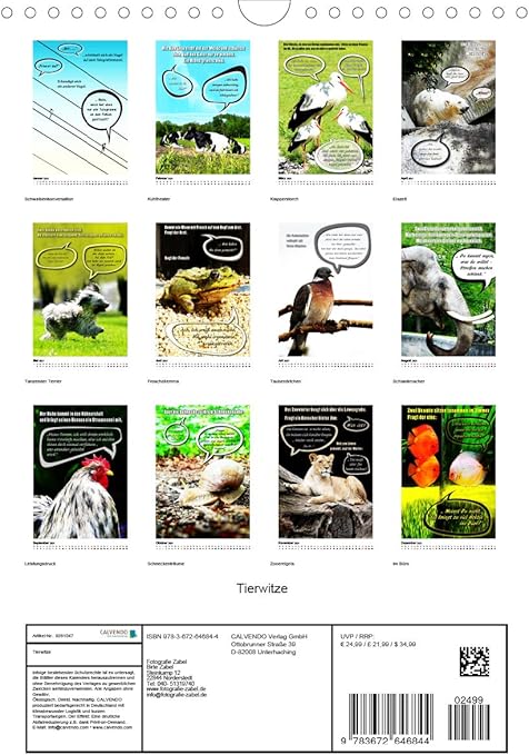 Tierwitze Wandkalender 21 Din Hoch Amazon De Zabel Birte Bucher