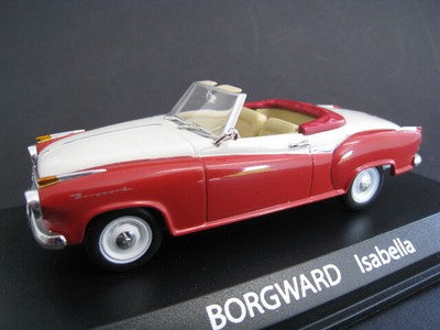 1958 Borgward Isabella Range with Isabella TS Convertible The first in the Borgward line was the normal Isabella sedan with 1,493 cc fourcylinder engine giving 60 bhp, then the TouringSport with 75 bhp, the TS de luxe, then the TS coupe, and recently at Frankfort, the Isabella TS convertible. 111 MB Borgward Isabella Cabriolet at Bremen Classic Motorshow 10jpg 3,072 × 2,304;. Borgward Isabella Cabrio 1959 Red 1/43 Pma Model Diecast 5 out of 5 stars 1 product rating 1 product ratings Borgward Isabella Cabrio 1959 Red 1/43 Pma Model Diecast $5434 From Italy $1062 shipping Brand MINICHAMPS See more like this Scale 143 Material Plastic.