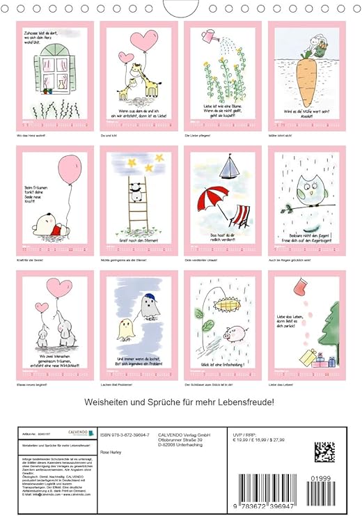 Amazon Com Weisheiten Und Spruche Fur Mehr Lebensfreude Wandkalender 21 Din Hoch Office Products