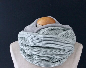 Gestrickter Loop Schal Aus Mohair In Grau Und Blau