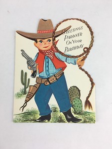 Vintage Sterben Cut Kind Geburtstagskarte Junge Cowboy Mit Lasso Sonnenschein Karte Ebay