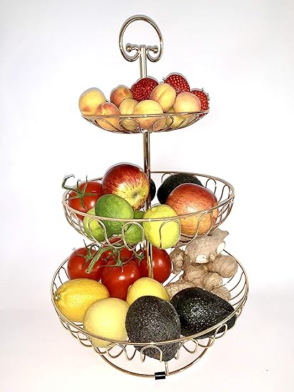 Auroni Obst Etagere 3 Stockig Obstkorb Metall Draht Gold Obstschale Mehr Platz Auf Der Arbeitsplatte Kuche 47 Cm Hoch Max Durchm 30 Cm Amazon De Kuche Haushalt