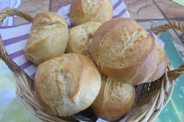 Leckere Brötchen, die garantiert locker und knusprig werden!. Ich konnte mich aber nicht so richtig entscheiden, welche ich nun backen soll Als erstes wollte ich Kartoffelbrötchen backen Aber da hätte ich für die Vollendung der Brötchen so an die 8 Stunden warten müssen, weil der Teig im Kühlschrank so lange gehen soll. Nur so erhält man Brötchen, die noch wie Brötchen schmecken – mit krosser Rösche und saftiger Krume Goldbraun und knusprig gebacken müssen sie daheim nur kurz aufgewärmt werden.