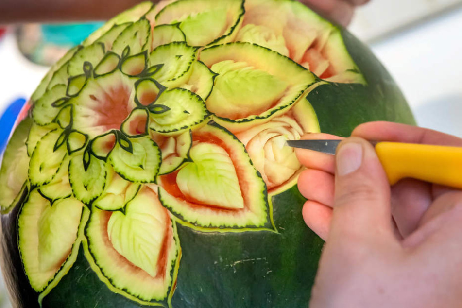 Wassermelone Und Honigmelone Gemuseschnitzen Obst Skulpturen Schnitzen