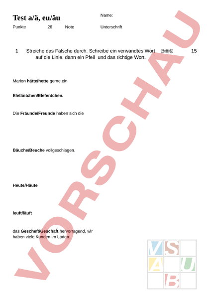 Merke dir Verwende die Ableitungsregel, in dem du wortverwandte Wörter findest um e oder ä, eu oder äu zu unterscheiden Nun kennst du die Ableitungsregel für e oder ä, eu oder äu und einige Beispielwörter und das nächste Diktat wird dir leichter fallen Ich wünsche dir viel Spaß bei der Videofrage. Arbeitsmaterialien zu Deutsch, äe, äueu 4teachers beinhaltet ein Komplettangebot rund um das Lehramt. OnlineÜbung 2 Auswahl OnlineÜbung 3 verwandte Wörter OnlineÜbung 4 Finde die Fehler OnlineÜbung 5 ä oder e?.