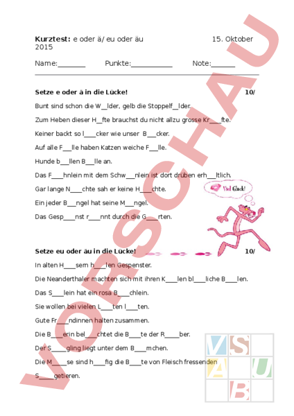 Arbeitsblatt Test Au A Eu E Deutsch Rechtschreibung