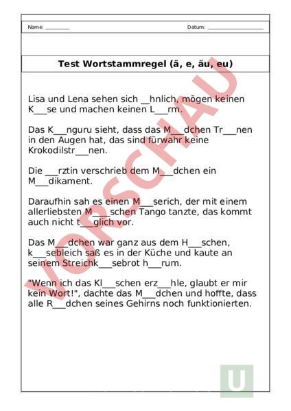 Arbeitsblatt Test Wortstammregel Deutsch Rechtschreibung