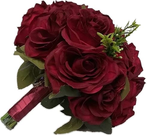 Amazon De Mdjywl Schone Blumen Bouquet Silk Burgunder Rosen Blumen Dunkelrot Blumenstrauss Burgunder