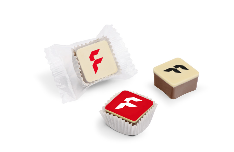 Pralinen mit Ihrem Unternehmenslogo Bleiben Sie bei Ihren Kunden in süßer Erinnerung Wir kreieren für Sie Ihre individuelle Praline mit Ihrem UnternehmensLogo in exklusiver Verpackung Nutzen Sie unsere Pralinen mit Aufdruck für Messen, Events oder als kleines Dankeschön für Ihre Kunden. Schokolade und Pralinen von Meisterhand Die Schokoladendruckerei fertigt aus feinster, hochwertiger belgischer Schokolade und edelsten Zutaten Schokoladen und Pralinen, die mit individuellen Fotos, Logos und Texten aus Lebensmittelfarben bedruckt werden. Individuell bedruckt mit Ihrem Firmenlogo!.