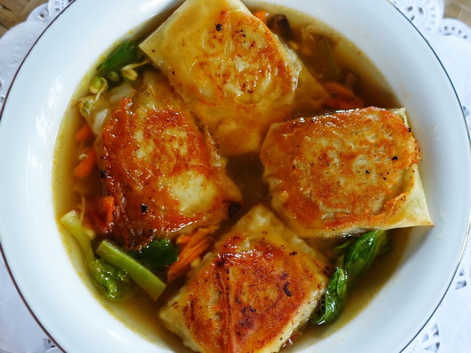 Wan tan vegetarisch. 6 Wan Tan Tofu Vegetarisch ein gebackenes Wan Tan mit Tofu gefüllt 7 Sate Gai ein gegrillter HühnerfleischSpieß mit hausgemachter Erdnusssoße 9 Wan Tan ein gebackenes Wan Tan mit Hühnerfleisch gefüllt 11 Garnele eine Garnele in Kokosnussflocken gebacken 96 Gemüserolle Vegetarisch eine Gemüserolle mit Pilzen, Bambus & Sojabohnensprossen. Wan Tan soep Tjap Tjoy soep Voorgerechten Loempia speciaal / Vegetarisch Loempia Chinese loempia's (met vlees) Vietnamese loempia's (met kip) Mini loempia's (vegetarisch) Kerrie drie hoekje (vegetarisch) Witte rijst Kroepoek Kippenbout Gebakken garnalen (6st) Saté babi (varkensvlees) (4 st) Saté Ajam (kip) (4 st). Finde was du suchst lecker & genial Jetzt ausprobieren mit ♥ Chefkochde ♥.