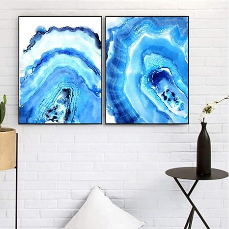 Artaslf Aquarell Leinwand Malerei Fur Wohnzimmer Nordic Wall Decor Grosse Kunst Abstrakte Landschaft Poster Und Drucke Hellblaue Bilder 40x50cmx2 Ungerahmt Amazon De Kuche Haushalt