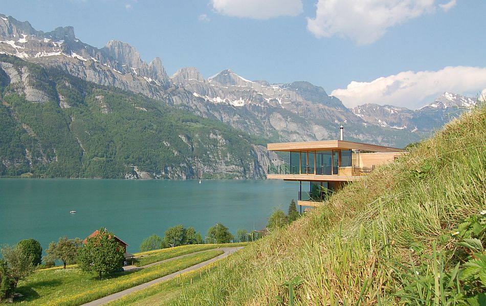 SYMBIOSE ZWISCHEN HANGLAGE UND ARCHITEKTUR In Anbetracht der Besonderheiten eines Eigenheims am Hang lohnt sich der Beizug eines mit der Bausituation vertrauten ArchitektenDas Bauen in Hanglagen bietet nämlich nicht nur Herausforderungen, sondern birgt auch gestalterische Chancen und grossen Variationsreichtum. Was dem Gebäude am Nordhang fehlt, ist an einem nach Süden abfallenden Hang zur Genüge vorhanden Sonne Ein solcher Bauplatz ist der Idealfall, da das Gebäude sozusagen in das Gelände "eingepackt" wird Nach Norden ist das Haus geschützt vor Wind und Wetter und nach Süden öffnet es sich eben in ganzer Höhe für die Sonne. Hausbau So wird das Haus am Hang ein Prachtstück 2719;.