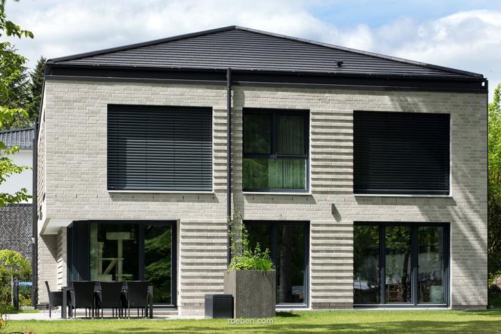 Der Klinker / Verblender BKDF graubeige ist ein Klinkerstein im Dünnformat (DF) in der Farbe graubeige Klinkersteine wie der Klinker / Verblender BKDF graubeige, die im Dünnformat (DF) produziert werden, haben die Maße 240 x 115 x 52 mm (LxBxH), so dass man pro m² Fassade bzw zu verklinkernder Fläche ca 64 Stück benötigt, um eine schöne Verklinkerung zu. Stadtvilla mit grauem Klinker und interessanten Fenstern. Stadtvilla WBI Hausbau Kompakt und modern auf zwei Etagen Stadtvilla Klinker, grau.