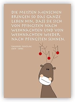 Komische Weihnachtskarte Mit Elch Und Fontane Zitat Die Meisten Menschen Bringen So Das Ganze Leben Als Schone Grusskarte Zu Weihnachten Zum Jahres Ende Fur Familie Und Firma Amazon De Burobedarf Schreibwaren