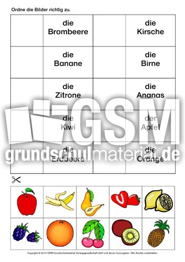 Ab Obst Zuordnen 1 Arbeitsblatter Obst Gemuse Ernahrung Themen Und Projekte Hus Klasse 2 Grundschulmaterial De