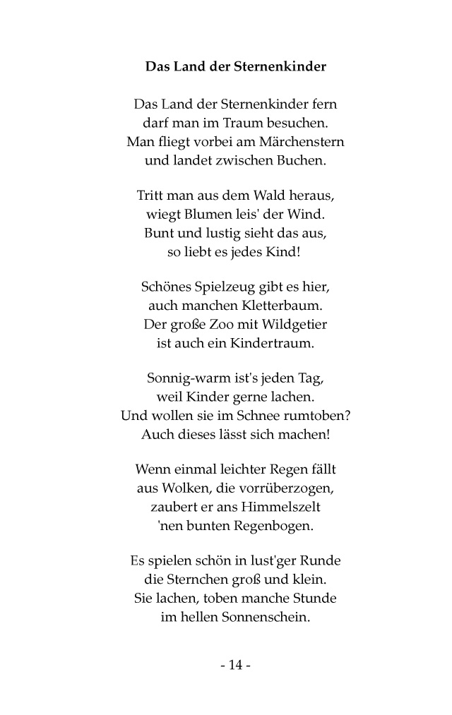 Gedichte für Sternenkinder, Schmetterlinkskinder – das Mitgefühl in Worte fassen Twittern Wer erfährt, dass Freunde oder Bekannte um ein Schmetterlingskind trauern, hat es oft schwer, sein Beileid auszudrücken. Das Land der Sternenkinder Gedichte für trauernde Eltern Mit dir im Herzen Gedichte für Sternenmütter Mit Skulpturen von Andrea Ohlsen Poster für mein Sternenkind Zur Erinnerung bei Trauer, Verlust oder Fehlgeburt in Fotopapier Rundfux LIEBEVOLLE ERINNERUNG Das Poster verwahrt Ihre Erinnerung mit einem wunderbaren Spruch und. Presse & Medien Heute ab 18 Uhr live auf dem Sternenkinderkongress;.