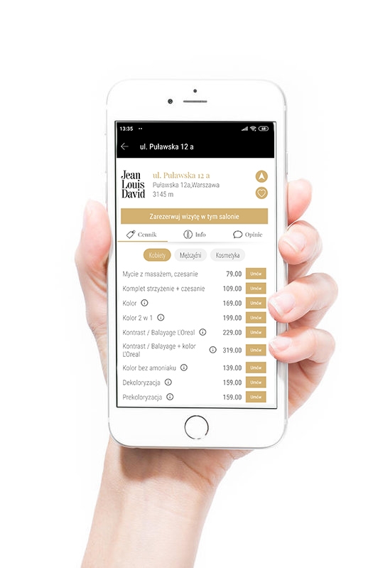 Jean Louis David Polska 28 хиљ свиђања Zapisz się na wizytę online https//jldpl/ lub dzwoniąc na Infolinię 22 391 50 00. Oferta Jean Louis David jest skierowana do klientów o wysokich wymaganiach, którzy poszukują luksusowych usług i wyjątkowego standardu obsługi „Być na czasie, czerpać przyjemność z bycia lustrzanym odbiciem gustów i ukrytych pragnień swoich klientów” – oto dewiza Jean Louis David Rezerwacja wizyty Cennik Karta Stałego Klienta. Jean Louis David, Praha Smíchov Elišky Peškové 1 , Praha Smíchov Česká Republika, EU.