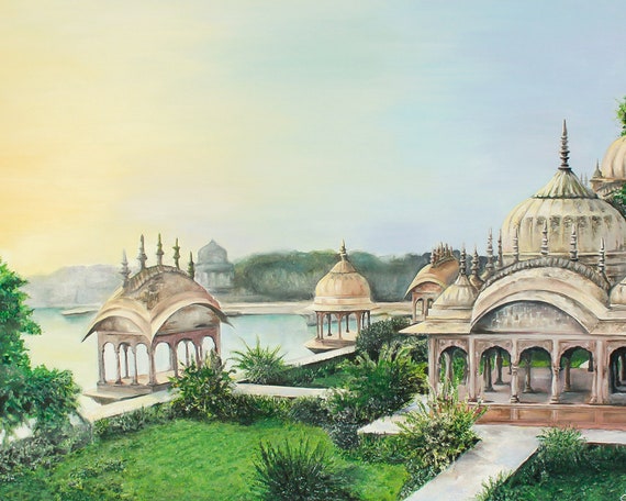 Indien Landschaft Indische Architektur Tempel Auf Dem See Etsy