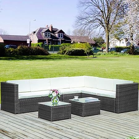 Amazon De Merax Poly Rattan Lounge Mobel Set Outdoor Gartenmobel Set 6 Sitzer Eckofa Terrasse Set Sitzgruppe Balkon Mobel Garnitur Mit Abnehmbare Kissen Gehartetem Glas Tischplatte Schwarz