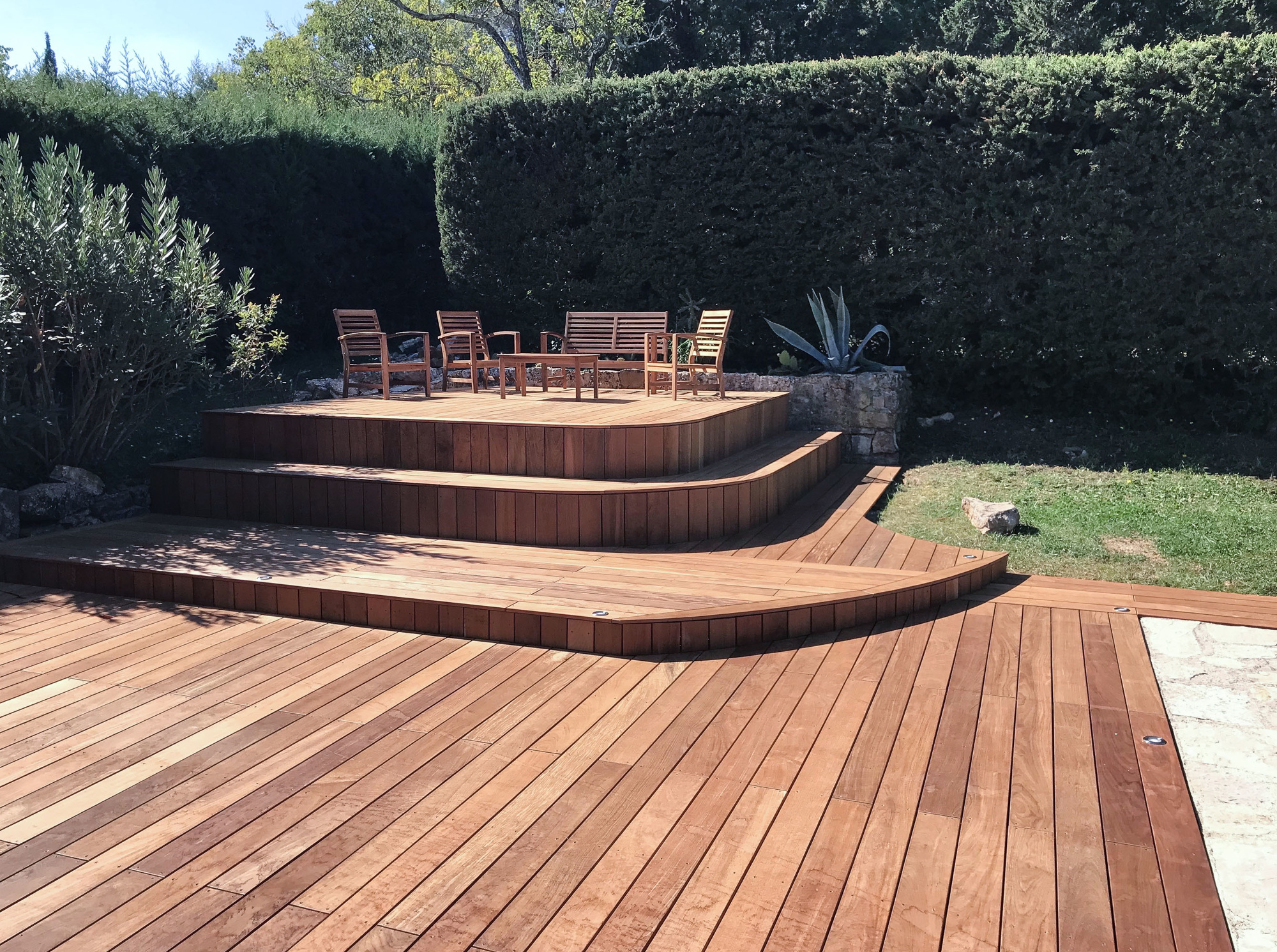 Terrasse En Bois Chaleureuse Et Eclairee Jpg 00 2621 Terrasse Bois Terrasse Jardin Amenagement Jardin