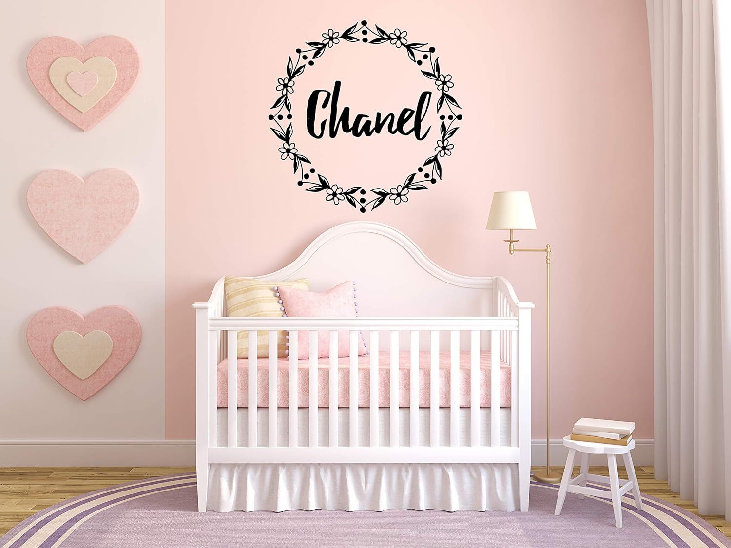 Amazon Com Vinyl Sticker Chanel Girl Floral Name Font Type Kids Room Nursery Mural Decal Wall Art Decor Eh30 Handmade