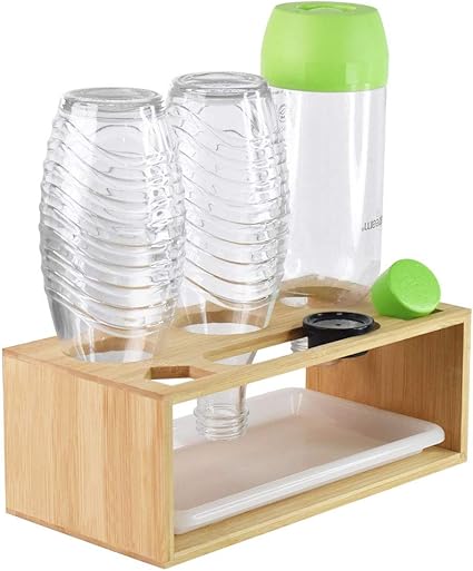 Annvchi Sodastream Flaschenhalter Soda Stream Glasflaschen Abtropfhalter Bambus Mit Abtropfschale Und Pinsel Geeignet Fur Eine Vielzahl Von Flaschen Fur Z B Soda Stream Crystal Emil Flaschen Amazon De Kuche Haushalt
