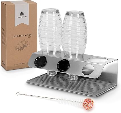 Homeside Smartdry Flaschenhalter Fur Sodastream Im Edelstahl Slimline Design Inkl Abtropfmatte Flaschenburste Der Elegante Abtropfhalter Fur Soda Stream Flaschen Easy Fuse Emil Uvm Amazon De Kuche Haushalt