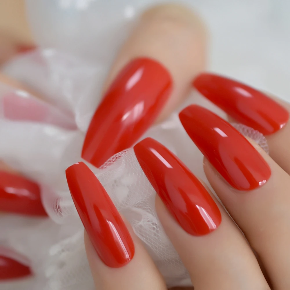 Extra Lange Sarg Ballerina Form Falsche Presse Auf Flamme Rot Nagel Uv Gel Sommer Kleber Auf Fingersnails Freies Klebebander Falsche Nagel Aliexpress